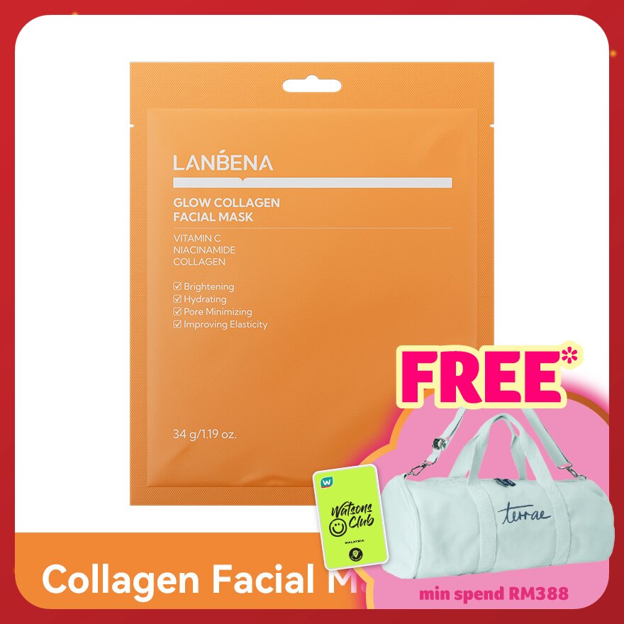 Lanbena Glow Collagen Facial Mask can helps on overnight glow up to dewy skin. It transforms from opaque to transparent - Instant Dewy Glow. It has the absorbable Marine Collagen Material which help penetrates to the skin base, releasing nourishing essence. The golden brightening triangle has precise synergy for multi-effect skin brightening. The Ceramide and Centella Asiatica ingredients help on instant cooling and calming effect. The upper-lower split mask design is perfectly fits the facial contours without slipping.