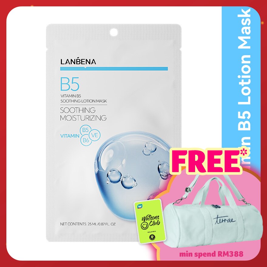 Lanbena Vitamin B5 Soothing Lotion Mask can instantly soothes and rapidly hydrates the skin. The hyper-infused essence is fully saturated with nourishing essence. The micro-emulsion texture is lightweight yet nutrient-dense for deep absorption. The triple vitamin complex provides multi-dimensional skin protection. The Bio-Mimic Contour-Fit Sheet is invisible, skin-hugging texture prevents essence dripping. It contains 99% Pure Panthenol (B5) which help soothes and strengthens skin barrier.