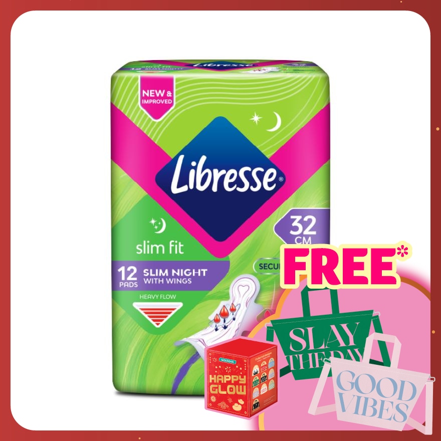 Libresse® Slim Night 32cm Wings , suitable for Slim Fit during heavy flow days. Libresse® pads with SecureFit™ and DFC works together to deliver all round fit and better absorption as it is uniquely designed based on womens' curves to keep your pad securely in place. Plus, it's made with 100% virgin pulp! Recommended for panty size M with hip measurement of 86-91cm. Ideal for heavy flow period days. Reasons to Love: SecureFit™ Deep Flow Channels (DFC) Wings Made with 100% Virgin Pulp
