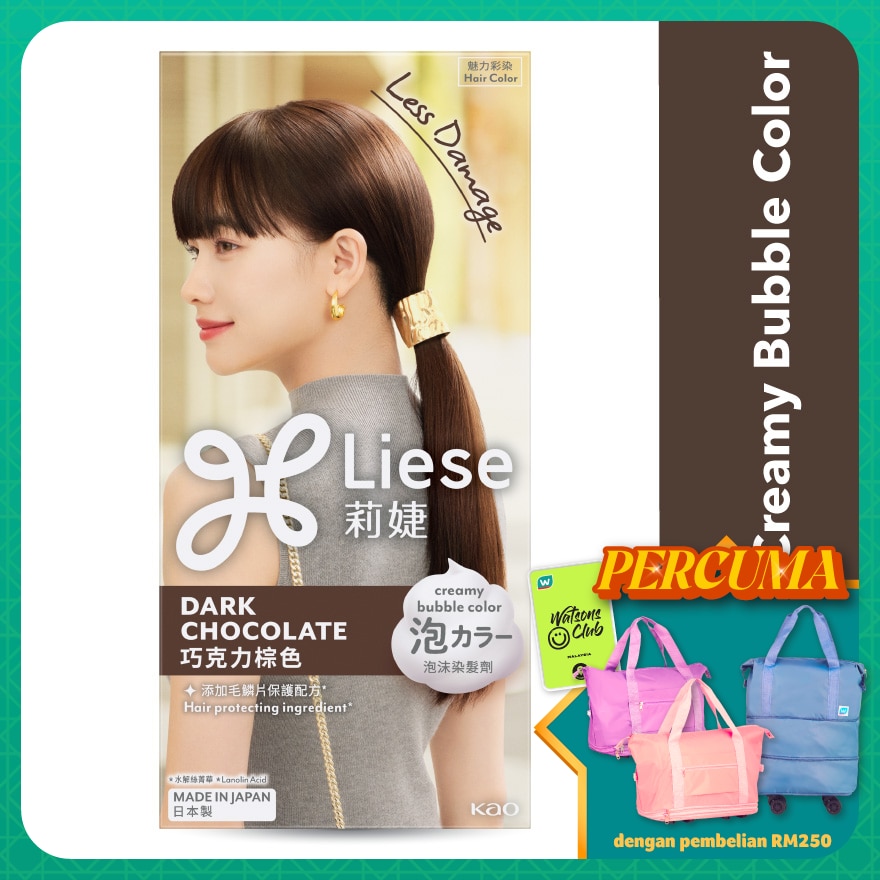 The all new Liese Creamy Bubble Color offers wide selection of colours while not forgetting in making the hair colouring process effortless with it's easy to use bubble foam. Be it Natural Series with brown shades or vibrant shades from its Design Series, create your own style and impression! It's your choice!
