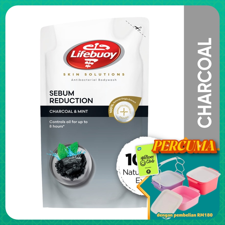Promote the reuse of a full original packaging, to reduce packaging waste Aim to reduce packaging waste with this refill pack Constant exposure to Pollution and Germs can make your skin susceptible to various skin problems. That's why we created New Lifebuoy Charcoal and Mint Antibacterial Body wash. It detoxifies your skin, fights pollution & gives you 99.9% germ protection*.