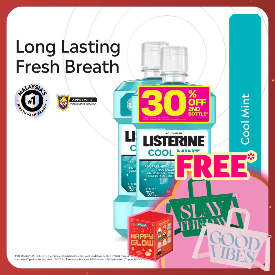 Listerine® Cool Mint kills 99.9% of germs that cause bad breath for fresher breath.- Unique formula with 4 essential oils deeply penetrates to kill bacteria in the plaque biofilm.- Recommended for daily use.