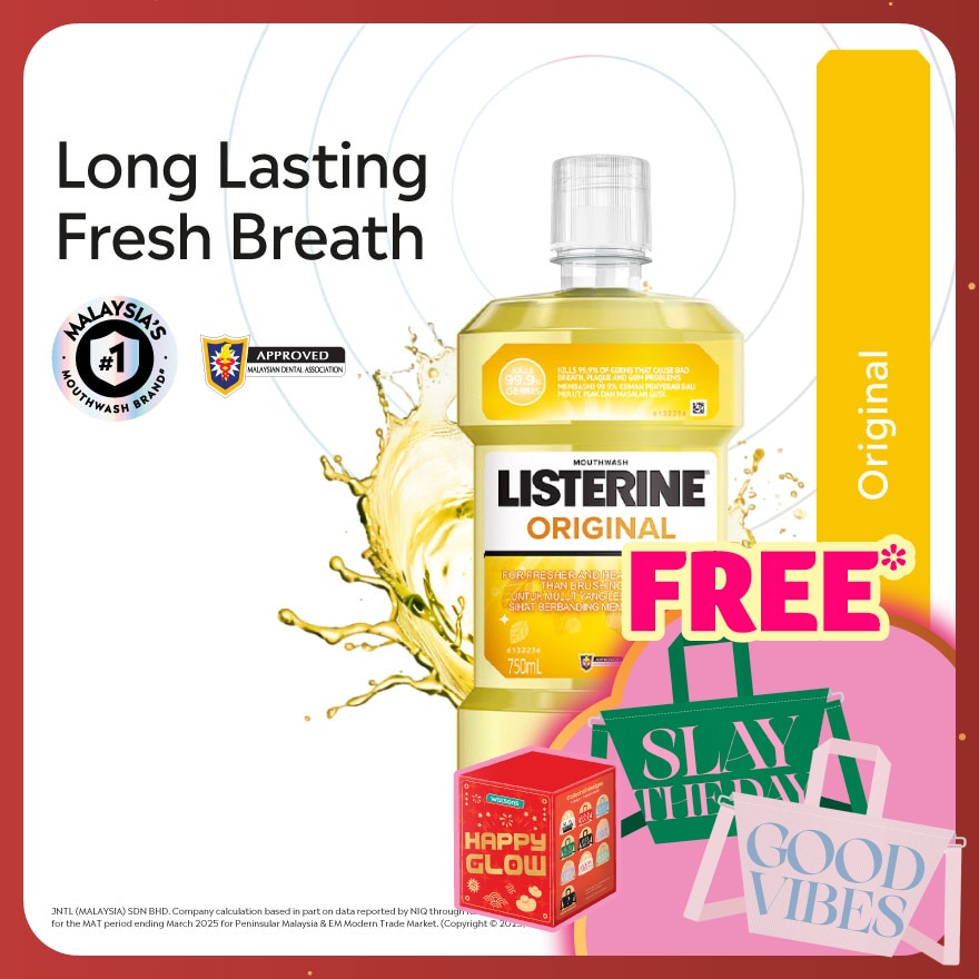 Listerine Original kills 99.9% of germs that cause bad breath for fresher breath. Unique formula with 4 essential oils deeply penetrates to kill bacteria in the plaque biofilm. Recommended for daily use.