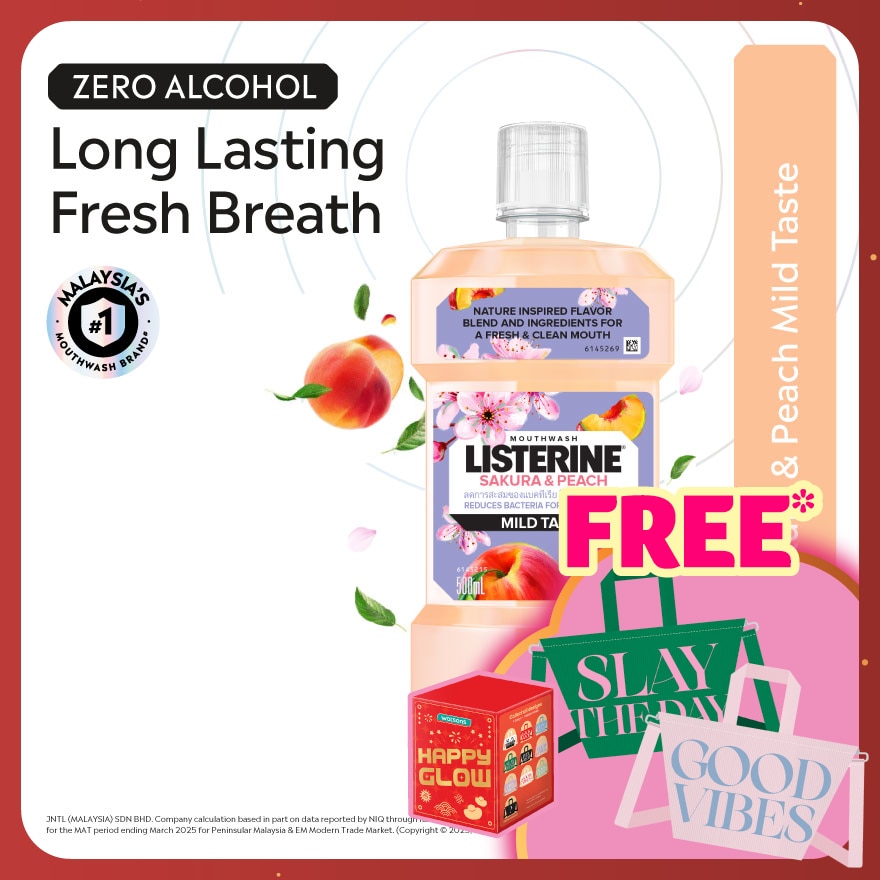For fresh breath and deeper mouth cleanse, use Listerine Sakura & Peach Zest, with zero alcohol for a less intense feel.- Reduces bacteria in the mouth to help protect and keep gums healthy- Reduces bacteria that cause bad breath and plaque vs brushing alone.