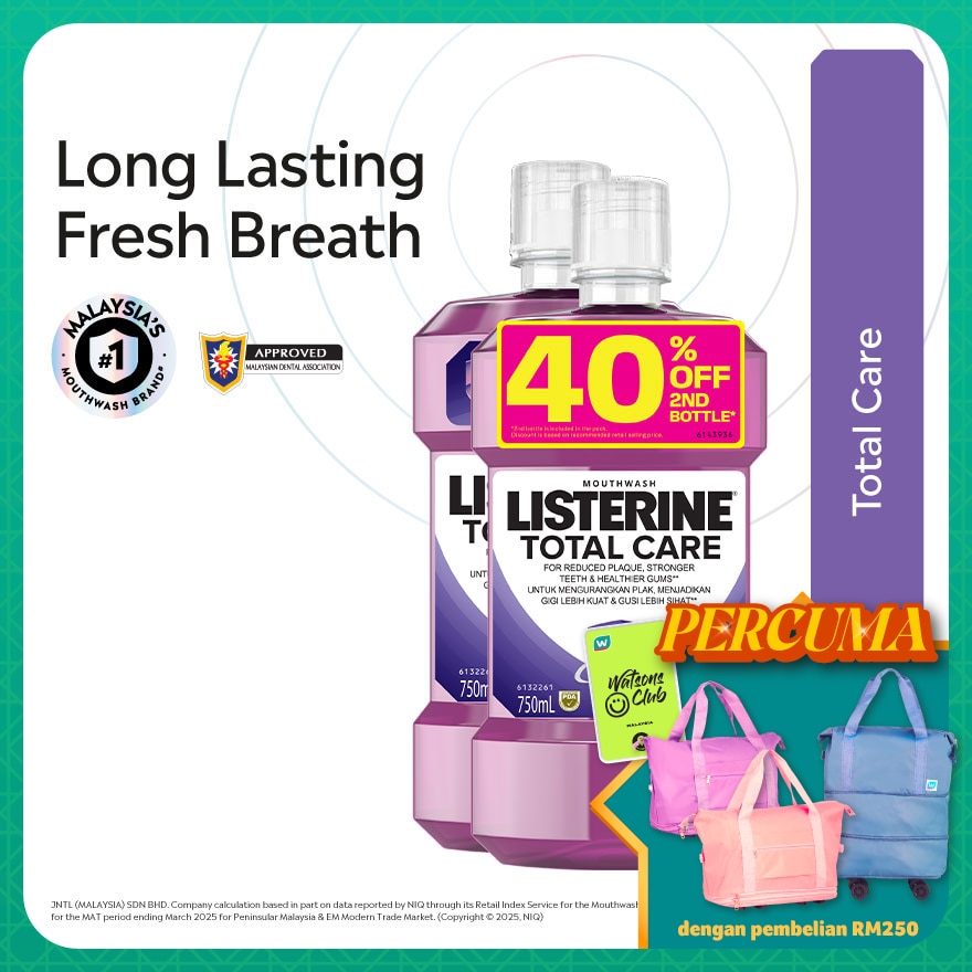 MBR FREE GIFT with purchase of RM48 on Listerine participating products in Watsons. While stocks last. T&C apply.