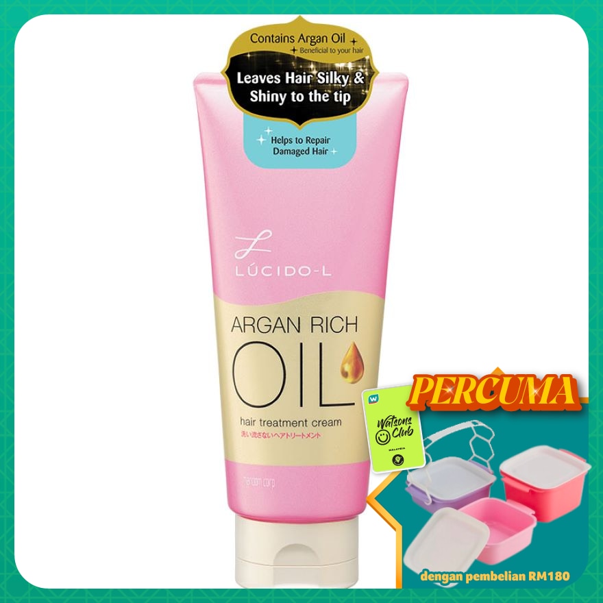 This product contains Argan Oil which is processed with extremely high pressure equal to 10,000 meter deepness of sea to develop high concentration oil. Able to restore natural luster and shiny beautiful hair which is smooth without greasy feeling. Deeply moisturize and reduce hair frizziness Rich and fine cream type product that helps to repair damaged hair. Helps to moisturize hair and prevents hair against the heat from hair-dryer or hair curler.