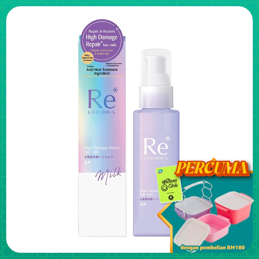Lucido-L High Damaged Repair Hair Milk deeply moisturized and soften hair, leaving hair cashmere-like soft texture and to restores its beauty at all times. Using Acid-Heat Treatment, a heat treatment which inspired by salon's technique which helps in repairing damaged hair intensively. Utilizing the heat from hair dryer or hair curler to boost the hair care effect for more beautiful, long-lasting smoothness, better manageability and shinier hair. Recommended for thick and stiff hair. Contains heat-protecting ingredients that protects hair againts heat and heat repair ingredients that repairs hair by utilizing heat. Enriched with natural moisturizing ingredient Murumuru Butter that moisturizes hair to a shiny, soft and smooth hair. Gorgeously sweet yet refreshing olive and grapefruit fragrance.