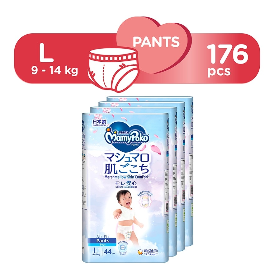 MamyPoko Air Fit Marshmallow Pants diaper are formulated with ingredients that consider for baby’s safety to provide the Marshmallow Softness for Baby’s delicate skin, while delivering 12 hours absorbency ※ for long hours dryness. This is our softest Super Premium baby diaper, 100% Made in Japan with comfortable soft material and plant- based oils to prevent skin irritation. Aiming “0” leakage with Marshmallow fit design that fits back and thigh snugly. It is free from harmful chemicals in which there is no nasties like petroleum derived oils, chemical fragrances, latex and artificial colourants on top sheet. Besides, the breathable design allows air flow, keeping your baby cool and comfortable. We know a happy baby means a happy family.