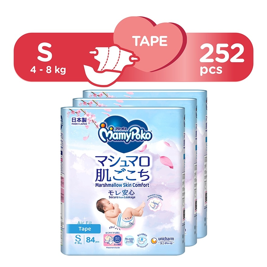 MamyPoko Air Fit Marshmallow Tape diaper are formulated with ingredients that consider for baby’s safety to provide the Marshmallow Softness for Baby’s delicate skin, while delivering high absorbency to prevent leaks for long hours use.