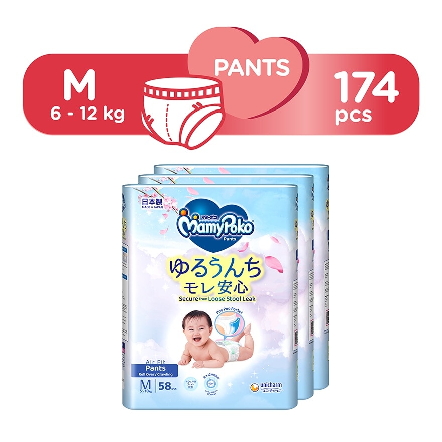 MamyPoko Air Fit Marshmallow Pants diaper are formulated with ingredients that consider for baby’s safety to provide the Marshmallow Softness for Baby’s delicate skin, while delivering 12 hours absorbency ※ for long hours dryness. This is our softest Super Premium baby diaper, 100% Made in Japan with comfortable soft material and plant- based oils to prevent skin irritation. Aiming “0” leakage with Marshmallow fit design that fits back and thigh snugly. It is free from harmful chemicals in which there is no nasties like petroleum derived oils, chemical fragrances, latex and artificial colourants on top sheet. Besides, the breathable design allows air flow, keeping your baby cool and comfortable. We know a happy baby means a happy family.