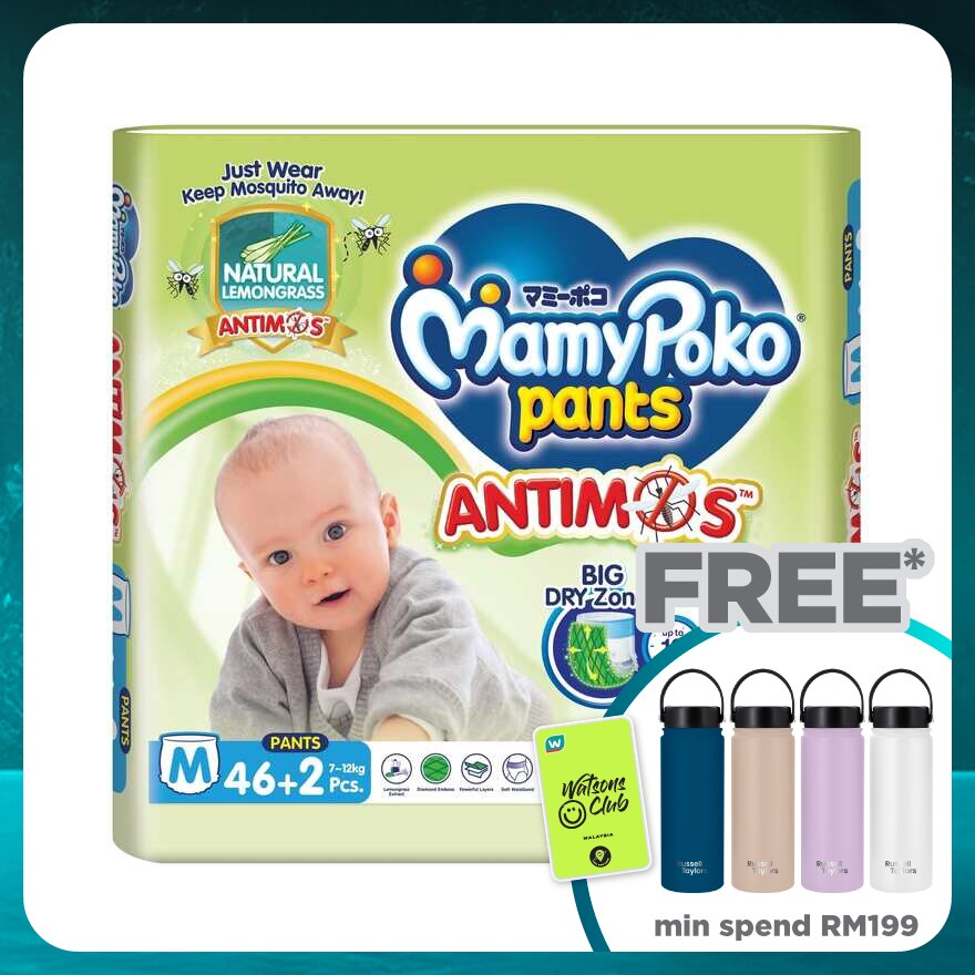 Just wear, keep mosquitoes away! Introducing the Mamypoko Antimos Pants with natural lemongarss extract scent.