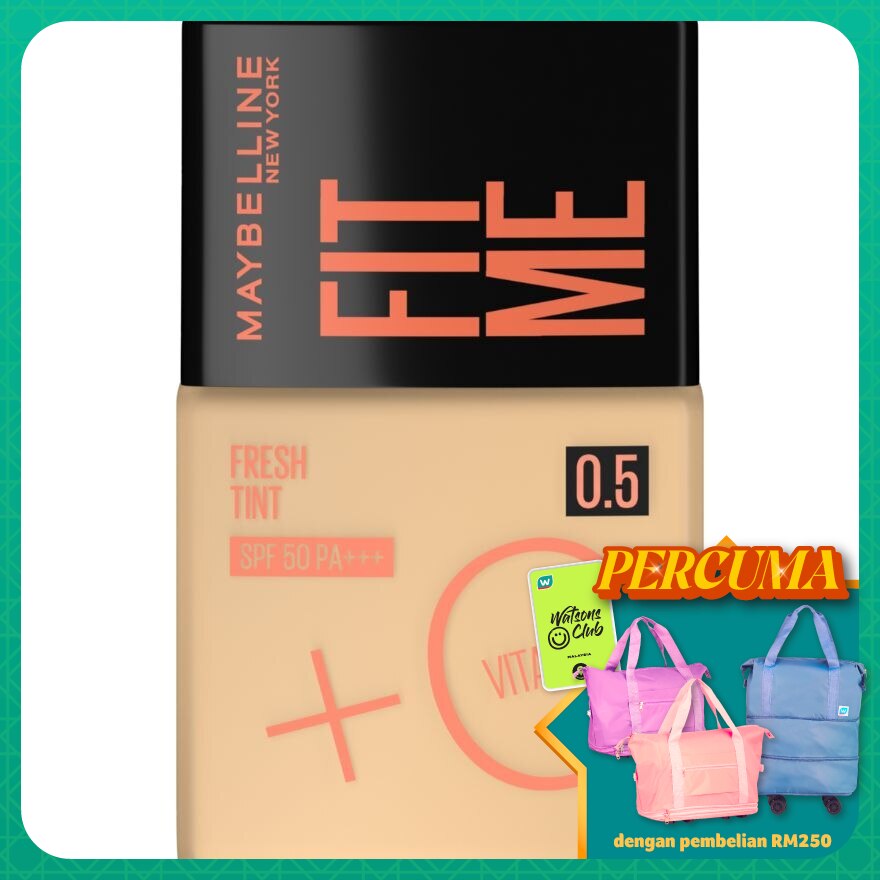 Say hello to the all-new makeup tint + skincare: MAYBELLINE Fit Me Fresh Tint 30ML for instant fresh and bright skin with light-natural coverage. With Vitamin C-infused formula that brightens, SPF 50 PA+++ that protects skin from sun, and Fit Me's kind-to-skin
