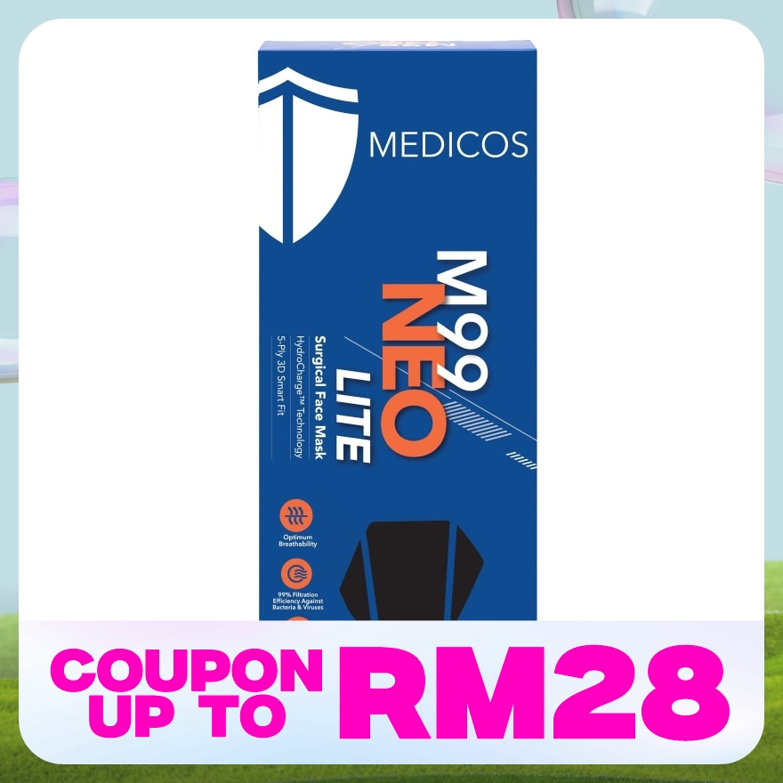 M99 Neo Lite: Experience superior breathability, comfort, and protection with our 5-ply 3D Smart Fit masks, featuring HydroCharge™ technology, ultra-lightweight design, 50% better breathability, 3X higher protection, 99% filtration efficiency (PM 0.1 PFE), and soft, comfortable earloops.