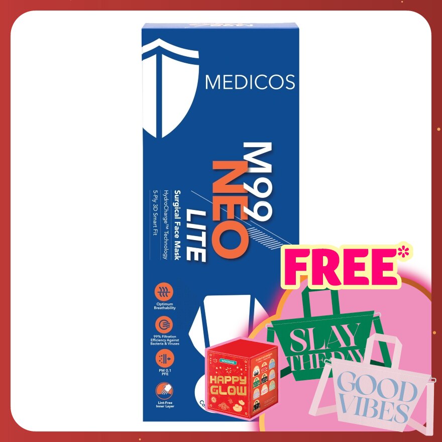 M99 Neo Lite: Experience superior breathability, comfort, and protection with our 5-ply 3D Smart Fit masks, featuring HydroCharge™ technology, ultra-lightweight design, 50% better breathability, 3X higher protection, 99% filtration efficiency (PM 0.1 PFE), and soft, comfortable earloops.