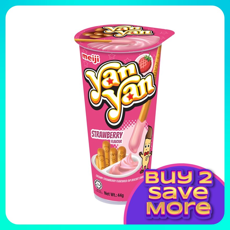 Meiji Yan Yan is a popular Japanese dipping snack consisting of biscuit sticks and a creamy dip, typically chocolate, strawberry, vanilla, or yogurt flavored. It's made by Meiji Seika since 1979 and is a favorite among children. The snack comes in a package with two compartments, one for the biscuit sticks and the other for the dip