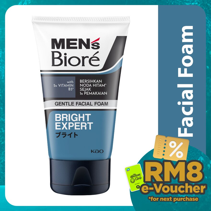 MEN's Biore Gentle & Bright Expert is a gentle facial cleanser that effectively cleanse dark spot since first use. Formulated with kin looks brighter and keeps skin from feeling dry.