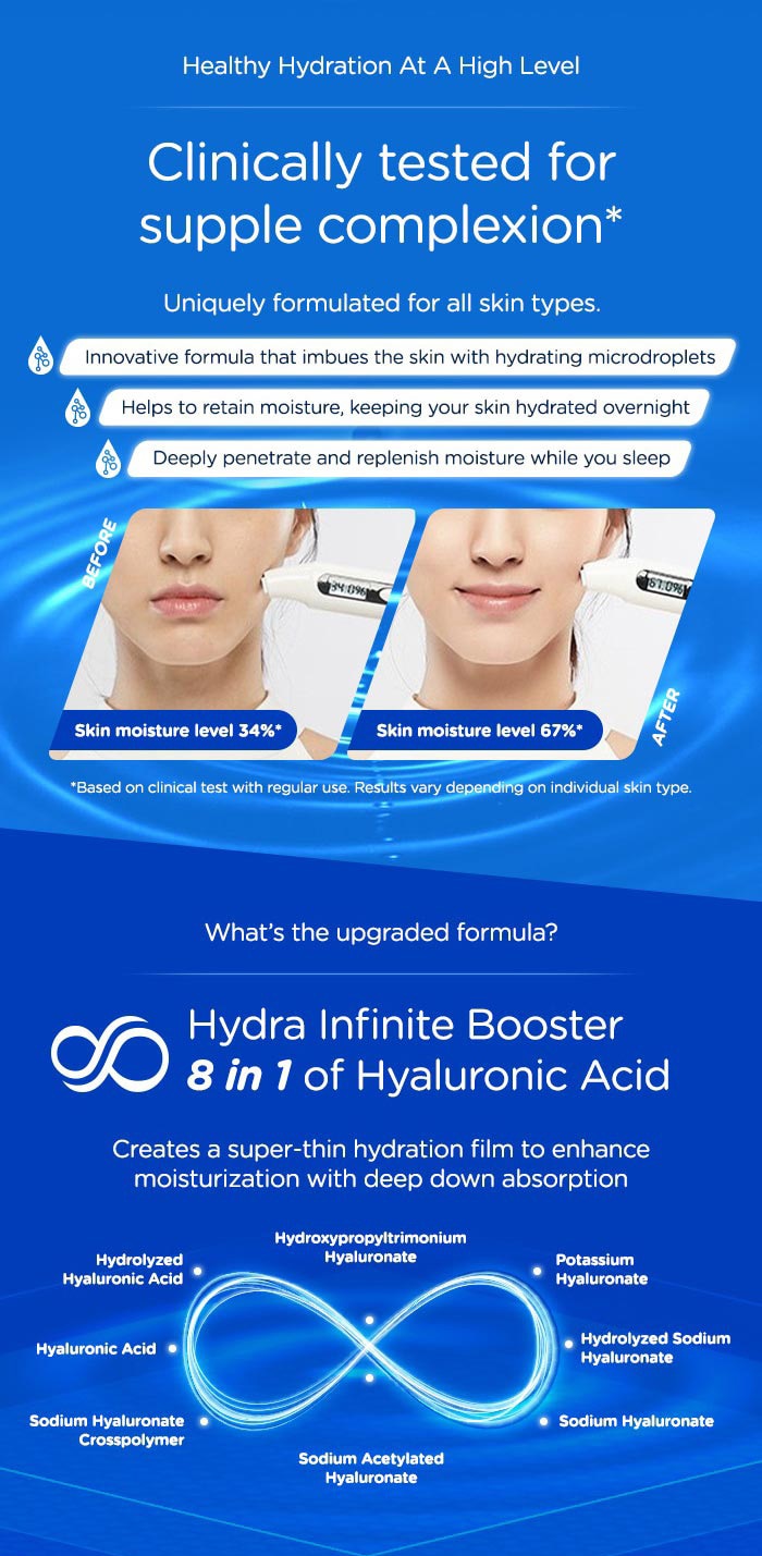 This Intensive Moisturising Facial Cream features an innovative formula that imbues the skin with hydrating microdroplets to deeply penetrate and replenish mositure while you sleep. Enriched with moisturing Hyaluronic Acid and Trehalose, it forms a protective layer that helps to retain moisture, keeping your skin hydrated overnight.