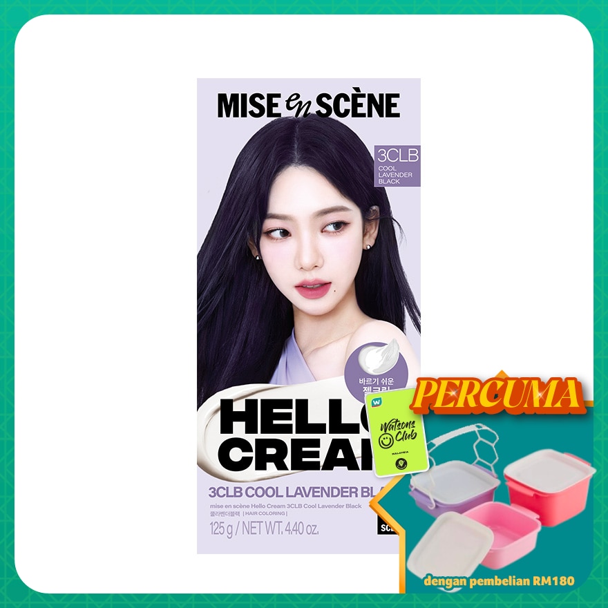 WATER / AQUA / EAU, ETHANOLAMINE, PEG-8, CETEARYL ALCOHOL, BUTYLENE GLYCOL, POLYQUATERNIUM-6, STEARETH-21, OLETH-2, TOLUENE-2,5-DIAMINE SULFATE, HYDROXYETHYLCELLULOSE, BEHENTRIMONIUM CHLORIDE, STEARTRIMONIUM CHLORIDE, SODIUM SULFITE, ERYTHORBIC ACID, RESORCINOL, XANTHAN GUM, ISOPROPYL ALCOHOL, 2,4-DIAMINOPHENOXYETHANOL HCL, M-AMINOPHENOL, P-AMINOPHENOL, DISODIUM EDTA, 4-AMINO-2-HYDROXYTOLUENE, HYDROLYZED VEGETABLE PROTEIN, ARGANIA SPINOSA KERNEL OIL, ASPARTIC ACID, GLUTAMIC ACID, OLEA EUROPAEA (OLIVE) FRUIT OIL, SIMMONDSIA CHINENSIS (JOJOBA) SEED OIL, N,N-BIS(2-HYDROXYETHYL) -P-PHENYLENEDIAMINE SULFATE, POLYSORBATE 60, DISODIUM PHOSPHATE, VITIS VINIFERA (GRAPE) SEED OIL, SODIUM PHOSPHATE, SODIUM BENZOATE, ACETIC ACID, POTASSIUM HYDROXIDE, MACADAMIA TERNIFOLIA SEED OIL, TOCOPHEROL [mise en scène Hello Cream 02 Developer] WATER / AQUA / EAU, HYDROGEN PEROXIDE, DIPROPYLENE GLYCOL, PEG-150 DISTEARATE, LAURYL GLUCOSIDE, COCAMIDOPROPYL BETAINE, ETIDRONIC ACID, PHOSPHORIC
