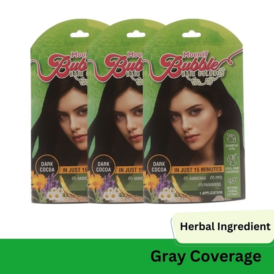 Moon17 bubble hair color is ideal for grey/white hair coverage to create natural, long lasting hair color in just 15 minutes time.It is simple and easy which you can do it yourself just like hair wash. It's shampoo texture create convenient and efficiently penetrate into grey/white hair without harmful ingredient such as ammonia & PPD ( allergic ingredient).