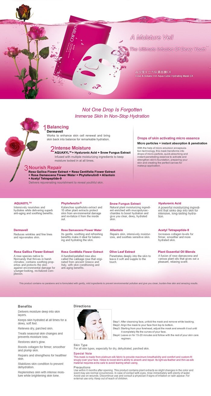 This amazing mask contains active concentrates. It provides intense hydration and replenishes the skin with abundant moisture, helping dull, tired looking skin to restore its dewy, radiant glow.