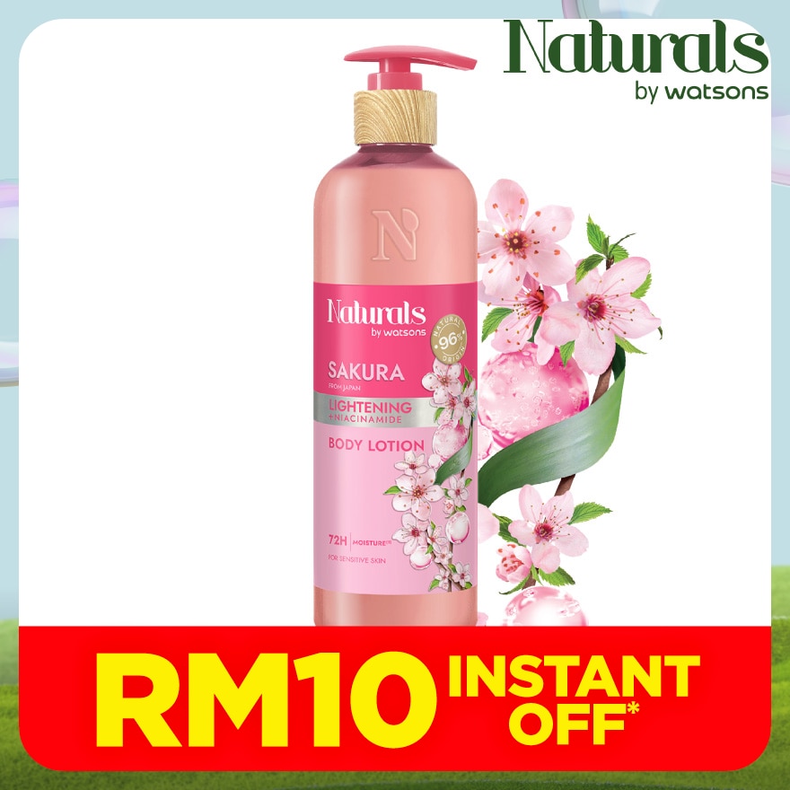 After cleansing with Naturals by Watsons Sakura Shower Gel, apply an appropriate amount of body lotion onto body and massage gently into skin until fully absorbed. For optimal results, use it in conjunction with the rest of Naturals by Watsons Sakura Bath & Body Care range on a daily basis.