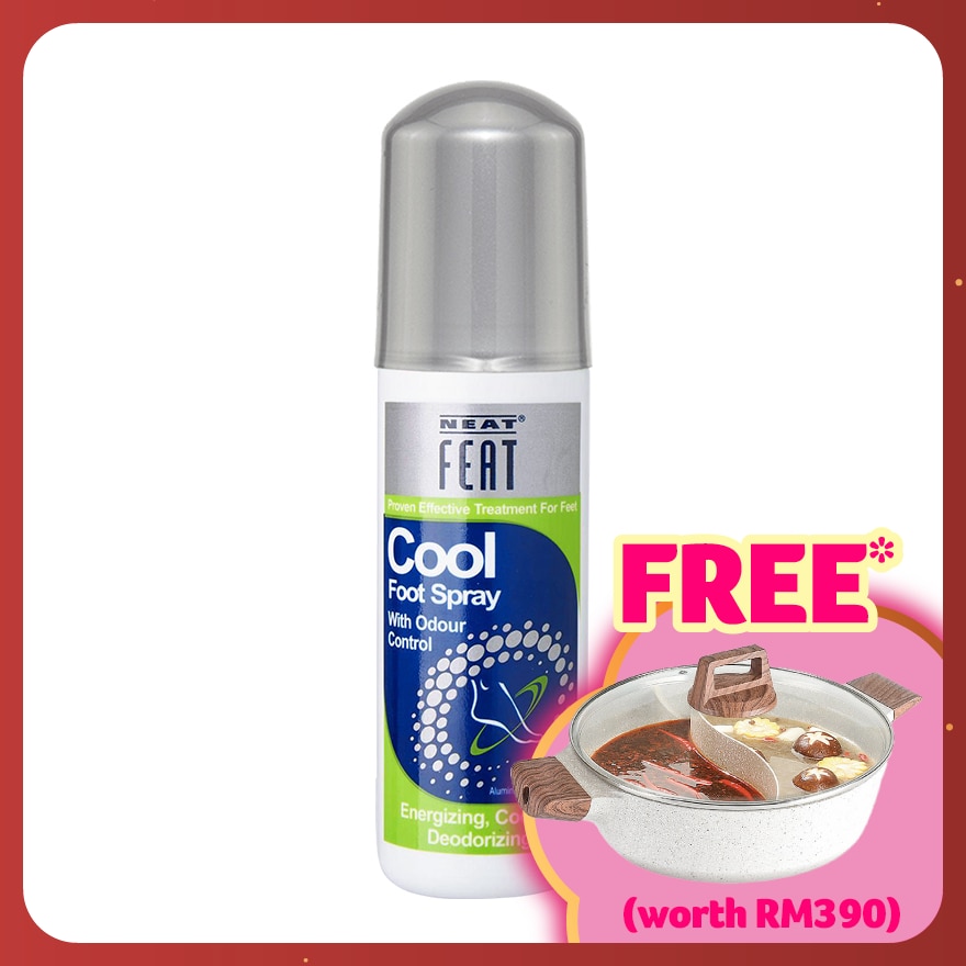 Neat Feat Cool Foot Spray has been developed as a refreshing, cooling foot spray with deodorant action to freshen and energize the feet. It has a specially developed Tri-Action formula which neutralises odour, reduces moisture and provides 24-hour protection against odour.