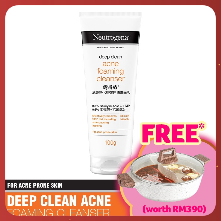 Neutrogena® Deep Clean® Acne Foaming Cleanser is a glycerin based foam cleanser, clinically proven to remove dirt and impurities such as excess sebum and dead skin cells while giving back a nourished glow to your skin.