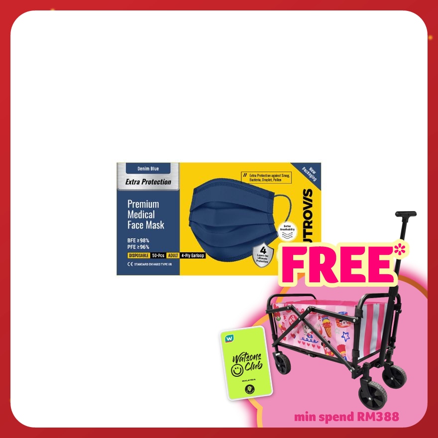 Extra Protection Premium 4-Ply Medical Face Mask Adult Denim Blue 50s