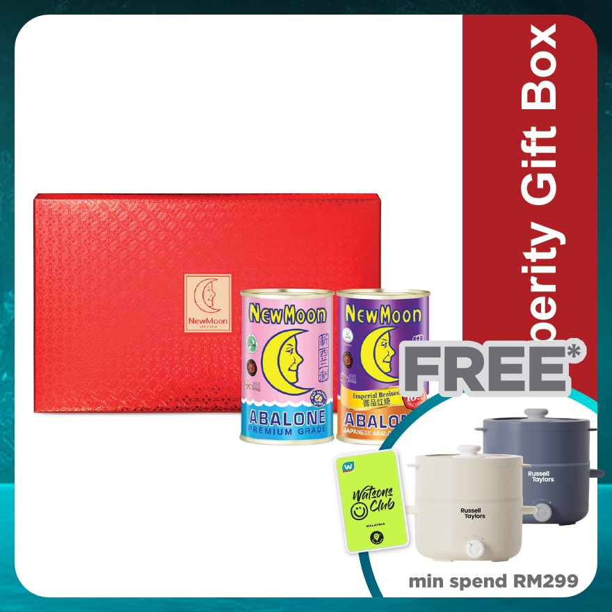 * New Moon New Zealand Abalone (425g can) Each can contains 1.5 pieces of abalone. * New Moon Coin Gift Box – Japanese Species Imperial Braised Abalone Each can consists of 10 pieces of abalone.