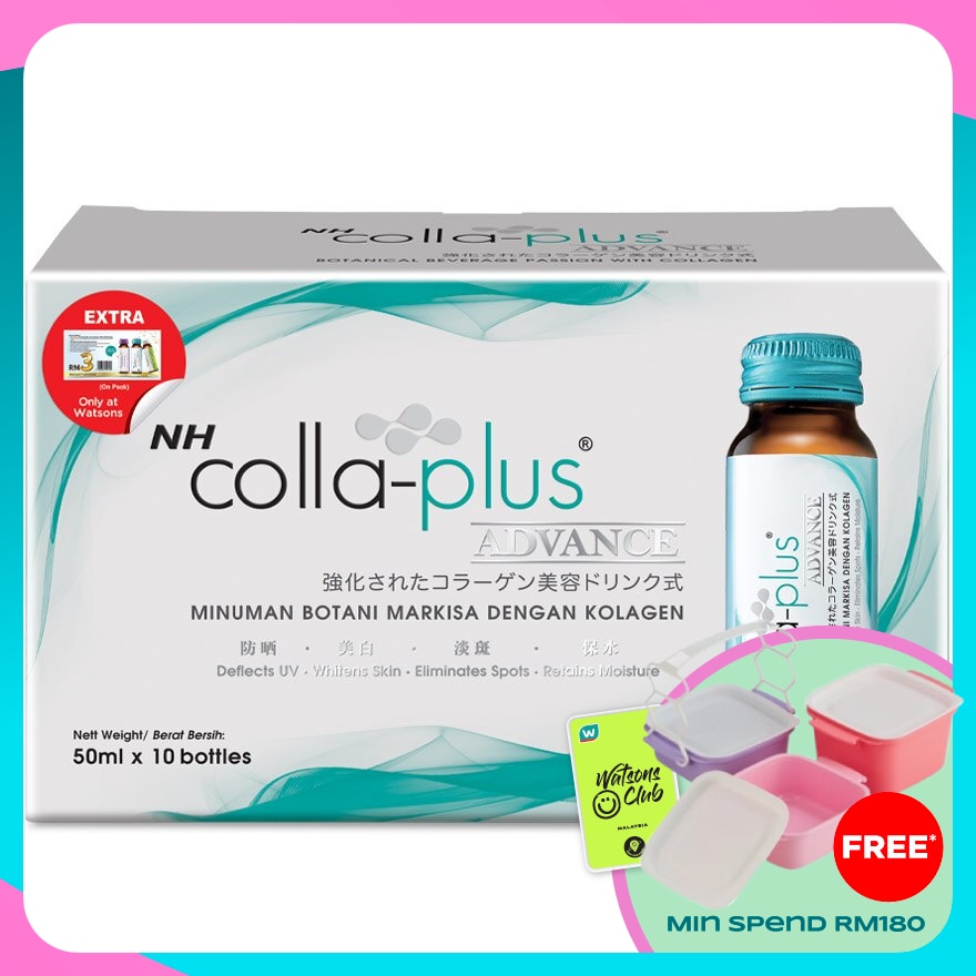 NH COLLA PLUS ADVANCE is an advance 6000mg collagen drink, upgraded version of NH COLLA PLUS to complete the strong foundation of skin by promoting on skin whitening and deflects UV rays efficiently. This is the answer to fairer and flawless skin.