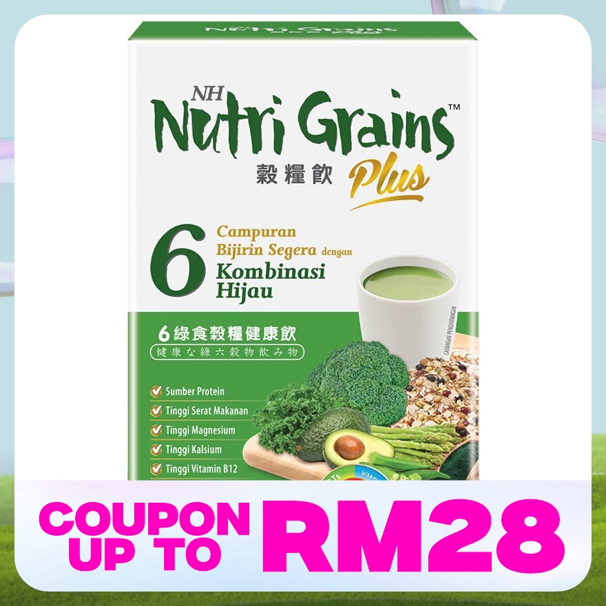 1) 20 nutrient-rich grains: Brown Rice, Corn Grit, Soya Bean, Red Rice, Adzuki Bean, Pearl Barley, Mung Bean, Peanut, Red Bamboo Bean, Almond, Buckwheat, Walnut, Green Pea, Lotus Seed, Black Soybean, White Wheat, Millet, Black Sesame, Black Glutinious Rice and Flax Seed. 2) 6 Green ingredients: Spirulina, Avocado, Asparagus, Okra, Broccoli and Kale.