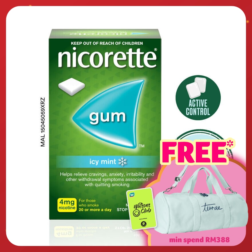 Nicorette Gum is a nicotine replacement therapy (NRT). It is used to relieve withdrawal symptoms and reduce the cravings for nicotine that you get when you try to stop smoking, or when you are cutting down the number of cigarettes you smoke while trying to stop smoking. Nicorette Gum can also be used to relieve cravings and withdrawal symptoms when you cannot smoke, e.g. in smoke free areas such as on a plane or at the cinema.
