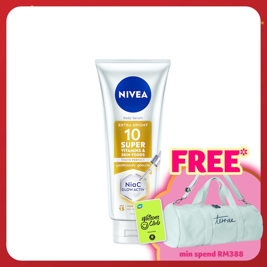 NIVEA Extra Bright 10 Super Vitamins & Skin Foods Youth Protect Body Serum contains 150x Vitamin C and Collagen Protect to Deeply Repair for Youthful, Plump, Radiant, Smooth & Tight Skin in 5 Days. This concentrated formula not only absorbs quickly but is non-sticky.