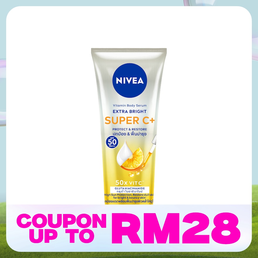 Nivea Extra Bright Super C+ SPF50 Vitamin Serum contains 50x Vitamin C to repair dull skin. The SPF50 to protect skin from the sun NIVEA Extra Bright Super C+ SPF50 is special formulated for Radiant & Bouncy skin. Ideal for daily use wherever skin needs care