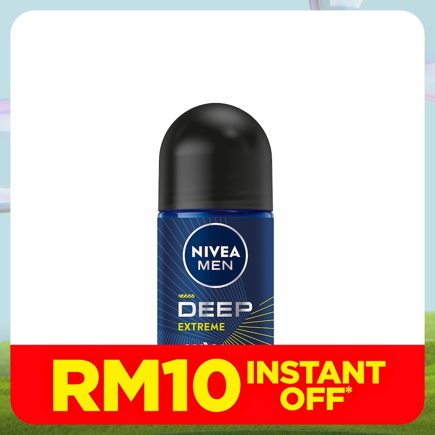NIVEA MEN DEEP Extreme Deodorant Roll On gives you ultimate freshness-boost before, during and after sports. Its energizing fragrance with strong woody oriental base refreshed by citrus accord. Create highlly memorable scent that keeps you Fresh and Clean all day long! Reliable 72H extra long-lasting sweat & odour protection. Does not leave stains or white marks on clothes. Reducing bacteria by more than 99.9% in vitro*