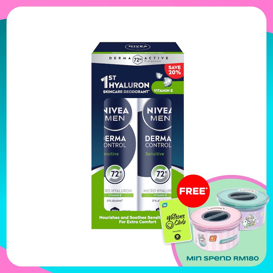 NIVEA MEN DERMA CONTROL SENSITIVE Anti-Perspirant offers reliable protection while caring for sensitive skin. Specially formulated with Micro Hyaluron and Vitamin E, it helps prevent skin irritation, providing gentle and effective underarm care.
