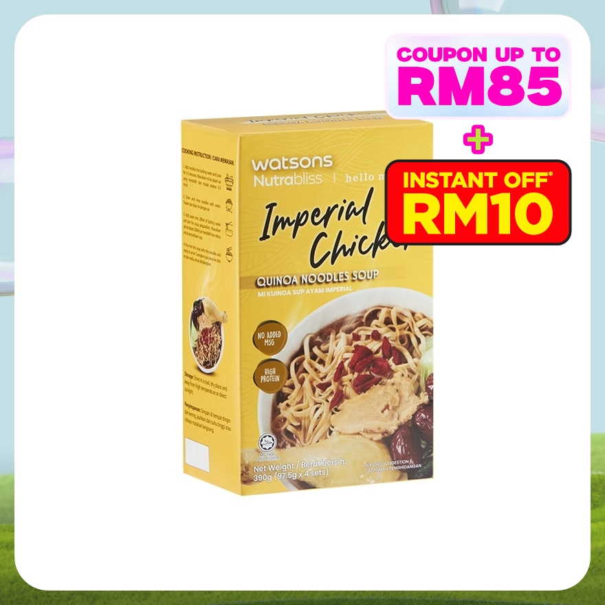 Noodles: Wheat Flour, Corn Starch, Organic Quinoa (4%) & Rock Salt. Paste: Water, Onion, Palm Oil, Nutritional Yeast (10%), Ginger, Garlic, Sugar, Chicken Seasoning Powder, Dang Gui Powder, Salt, Cinnamon Powder & Star Anise Powder. Allergen Information: Contains gluten. Produced in a factory where crustaceans, eggs, fish, nut and nut product, milk & sesame seeds are handled.