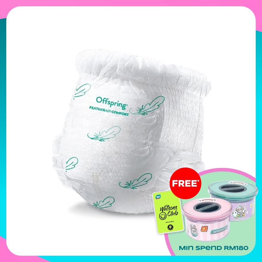 1. Stretch the waistband appropriately and gently ease your baby's legs into the openings. 2. Lift the waistband of the diaper above your baby's navel. Adjust the leg cuffs and waistband for a comfortable fit.