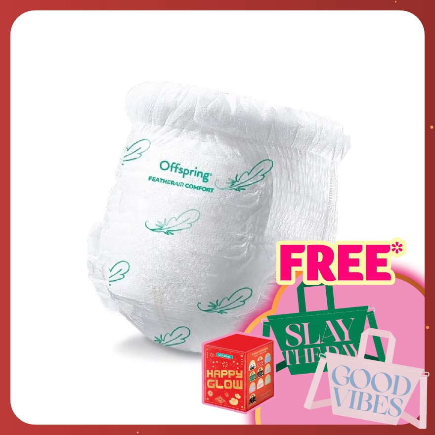 1. Stretch the waistband appropriately and gently ease your baby's legs into the openings. 2. List the waistband of the diaper above your baby's navel. Adjust the leg cuffs and waistband for a comfortable fit.