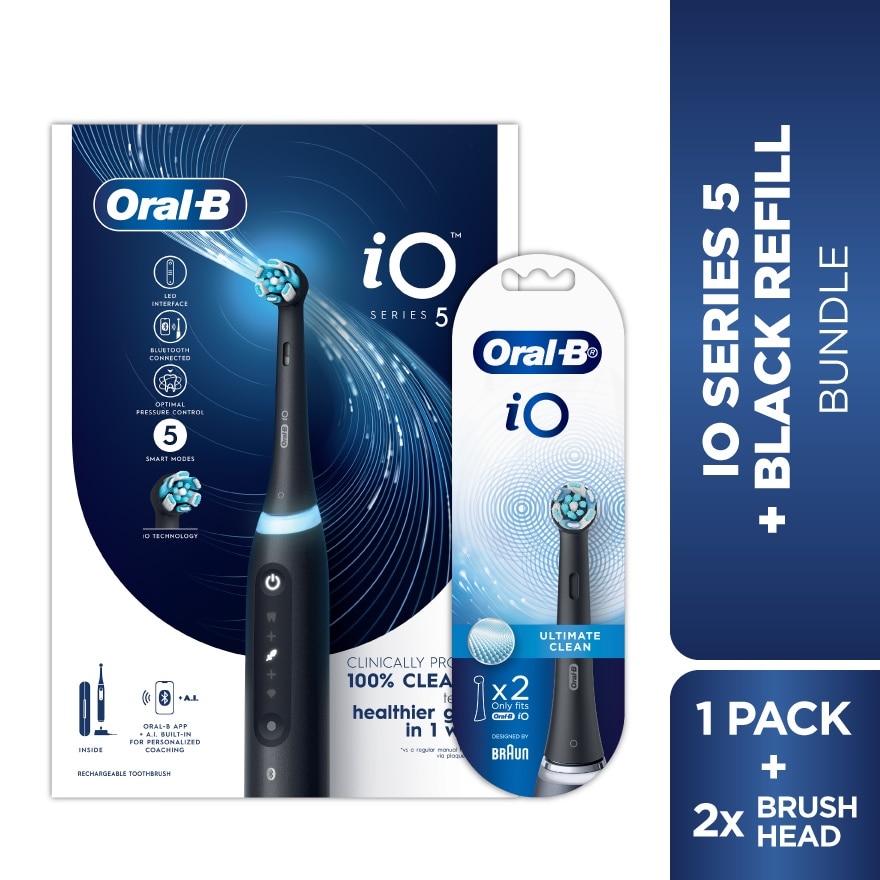 The iO 5 electric toothbrush features Oral-B’s best technology, combining a dentist-inspired round brush head with micro-vibrating bristles for a professional purifying clean feel at home. The Smart Pressure Sensor helps prevent you from brushing either too hard or too softly to better protect your gums. A.I. Brushing Recognition recognizes your brushing style and guides you to better brushing every day. Connects to the free Oral-B App for real-time brush tracking & guidance across 6 brushing zones. Replace your Oral-B iO toothbrush head every 3 months for the best results.#electric toothbrush #electric toothbrush for kids #brush heads #oral b electric toothbrush #oral-b #oral b replacement head #oral b electric toothbrush kids