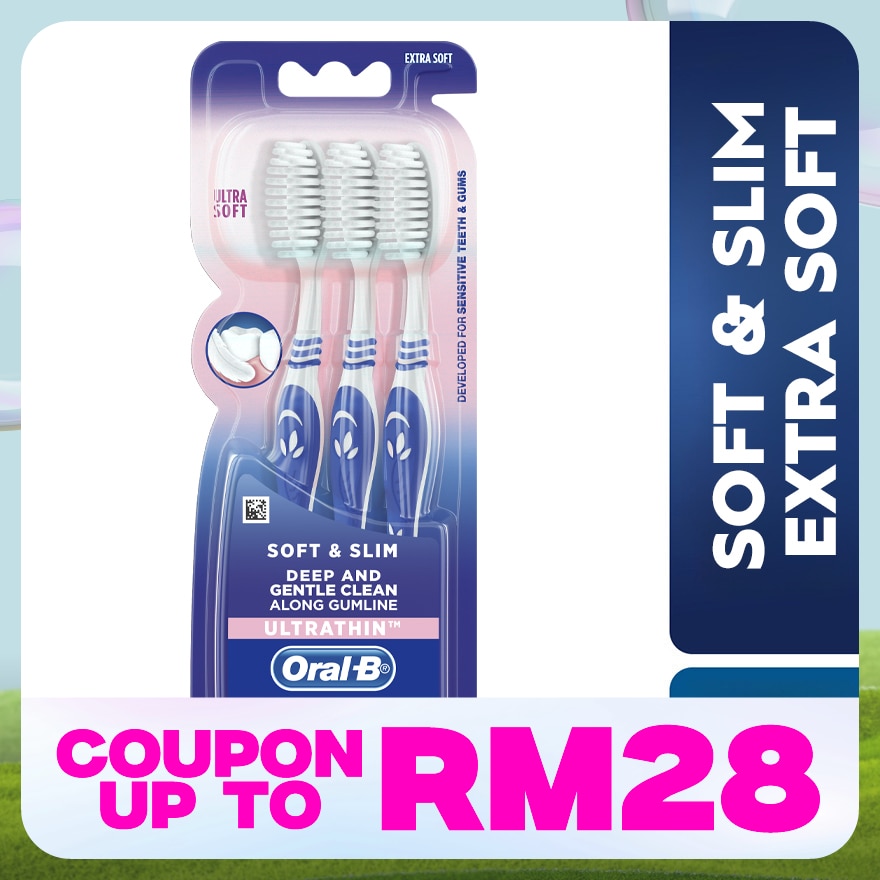 Oral B Soft & Slim toothbrush provides a deep and gentle clean along gumline. It has 100% 0.01mm Ultra Thin bristles tips that provides a deep clean without hurting gums. #oral-b #clean #fresh #gum #sensitive #whitening #electric toothbrush #mouthwash #replacement head #toothbrush #tooth paste #toothpaste #floss #black #blue #mint #pink