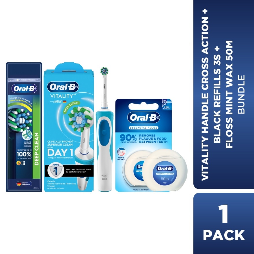 Vitality Handle Deep Clean + Black Refills 3S + Oral B Floss Mint Wax 50m