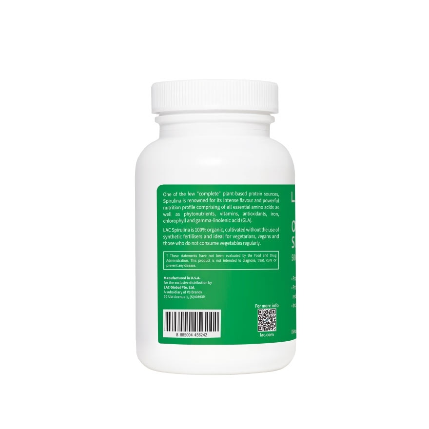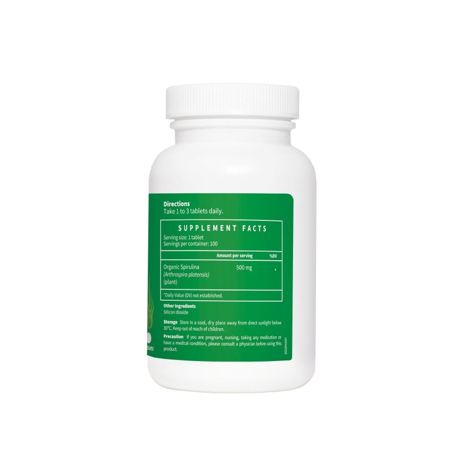Key Ingredients Spirulina is each 501mg tablet contains of Arthrospira platensis (whole plant) 500 mg. Other Ingredient is Silicon dioxide