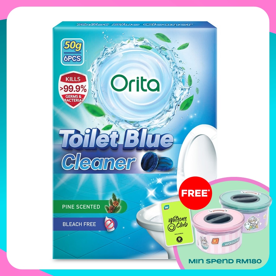 Orita Household Cleaning - Toilet Blue Cleaner 6x50g (Pine). This product has been tested effective to kill Enterococcus hirae, Escherichia coli, Pseudomonas aeruginosa, Staphylococcus aureus.