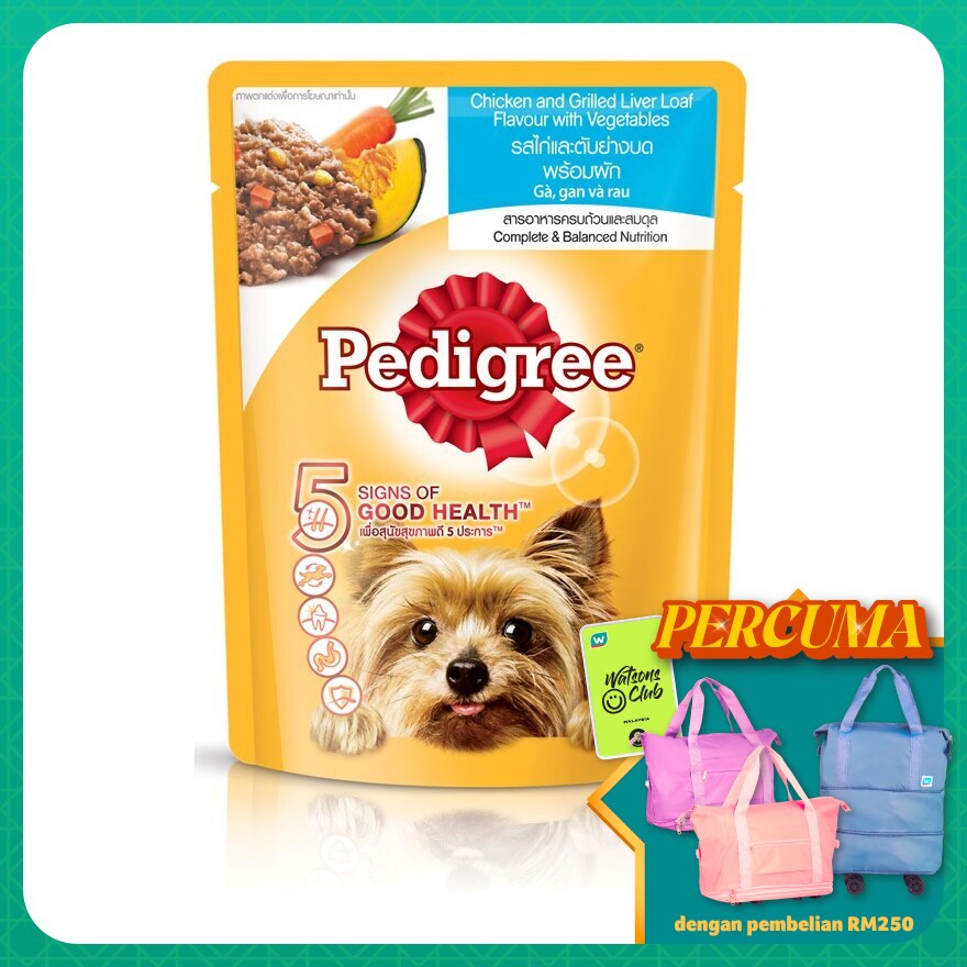 Chicken by product, chicken liver, carrot, pumpkin, wheat flour, fiber, gelling agents, minerals, flavours, soybean oil, vitamins, amino acids, EDTA, Sugar, colouring agents.