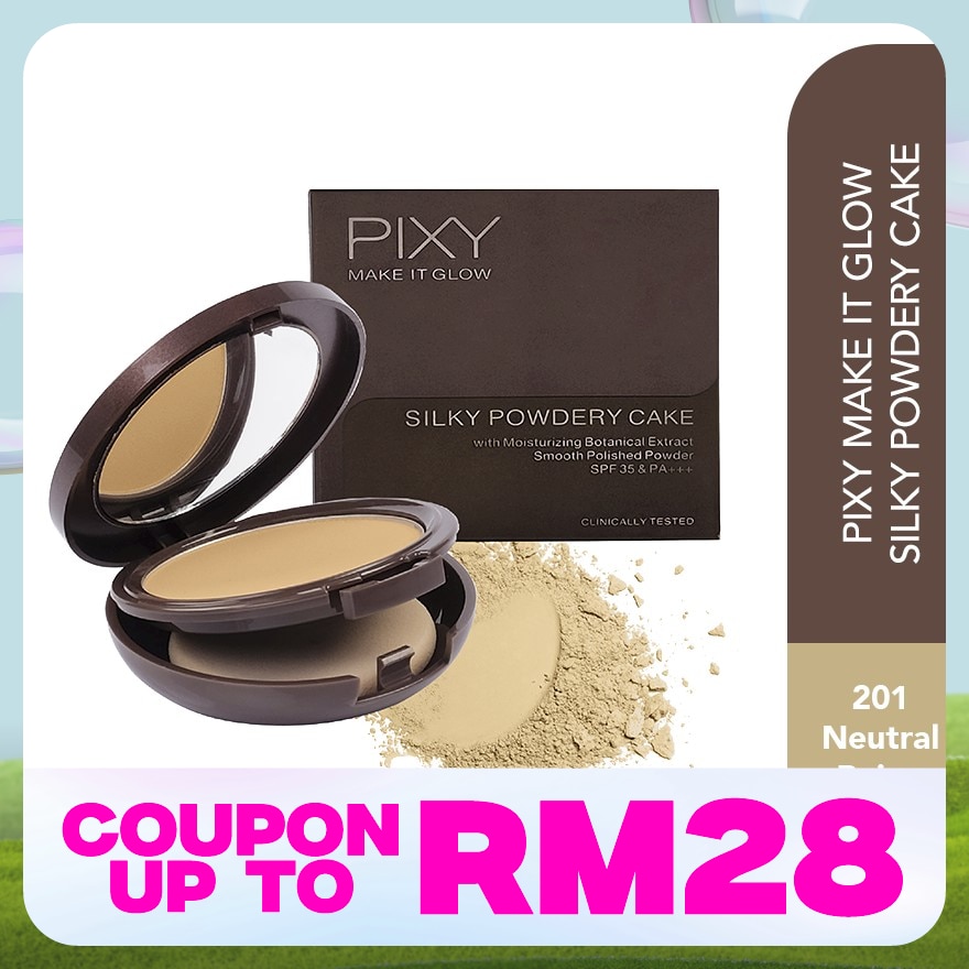 Moisturizing Botanical Extract - Provides perfect dewy and makeup results with visible skin results Healthy and natural content. - Light Reflection Technology Can disguise imperfections on the skin such as large pores, black spots and uneven skin tone. Smooth Polished Powder - Produces beautiful looking skin with high closing power. The texture smooth is very easy to blend without causing a heavy feeling on the face. SPF 35 & PA +++ - Optimal protection against UVB & UVA rays Visual name: PIXY MAKE IT GLOW SILKY POWDER