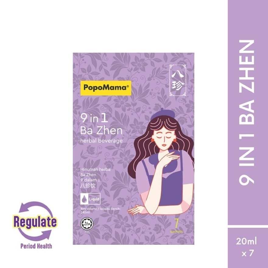 Popomama 9 In 1 Ba Zhen Herbal Beverage Liquid Sachet (To Relieve PMS & Cramps, Nourish Qi & Blood, Beautiful Skin & Complexion, Boost Energy & Immunity, Calm Mind & Relaxation)