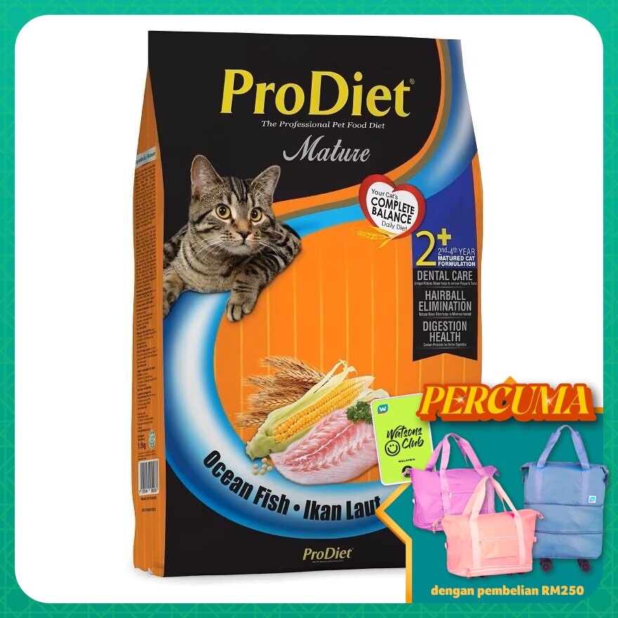 ProDiet Ocean Fish Dry Food offers your adult cat valuable protein with selection of fish. It contains nutrients to support on hairball control, reduces odour, and helps maintain your feline