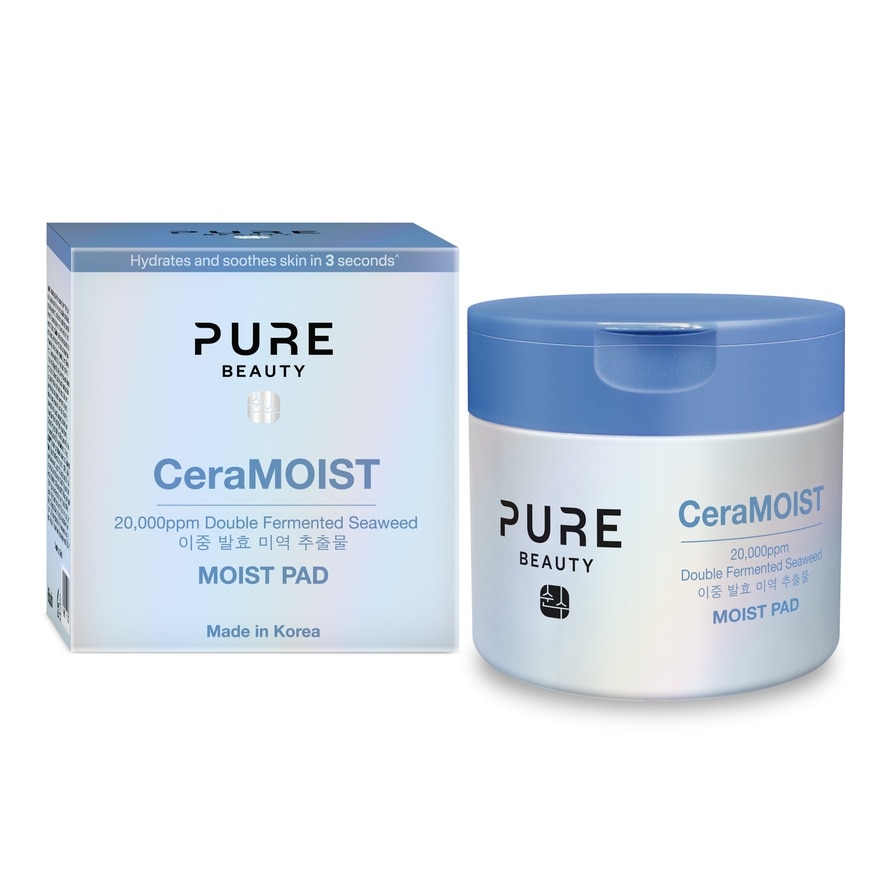 Indulge in the elegance of Double Fermented Seaweed Extract from Jeju Island. Our meticulous fermentation process enhances purity and absorption, enveloping your skin in deep nourishment and radiance. Combined with hyaluronic acid and ceramide, this luxurious formula delivers 3X hydration power to lock in moisture, protect against dryness, and keep your skin soft, supple, and deeply hydrated. Embrace a luminous glow that lasts. Featuring a convenient one-touch cap, the CeraMOIST Moist Pad has an embossed side to effectively exfoliate dirt, sebum, and impurities, while the softer side instantly hydrates and smooths your skin.