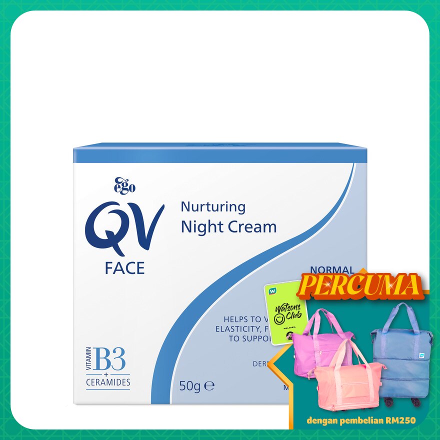 QV Face Nurturing Night Cream is scientifically formulated with Ceramides, Vitamin B3 (Niacinamide), Safflower Seed Oil and triple moisturiser blend to help replenish vital moisture that may have been lost throughout the day and help support the skin barrier. This rich cream helps to visibly improve skin elasticity and reduce the appearance of fine lines and wrinkles for a visibly firmer, and smoother complexion and radiant looking skin.
